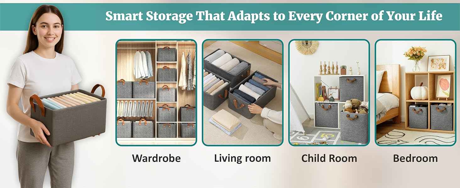 [Storage for Wisemen] Be it a painting, random dolls, a ukulele on the floor, or you are storing out-of-season clothes, these Large storage boxes will lend you a helping hand to organize them, making your house look like it's straight from the catalog pages